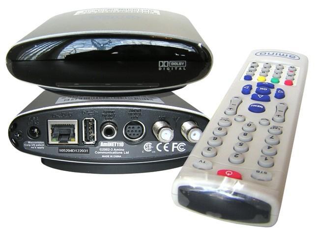 6) Декодер AmiNET 110 для СТРИМ ТВТелевизионная приставка-декодер AmiNet 110 представляет из себя декодер (производство компании Amino), пульт ДУ, A/V, адаптер питания и кабель.