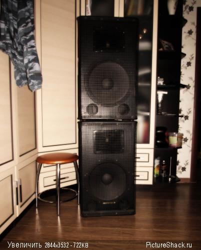 Как я понял колонки из разряда концертных, фазоинверторного типа. Очень тяжелые, с металлическими грилями.