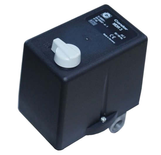 Просто две фазы размыкаешь и все. Например вот такой: https://www.vseinstrumenti.ru/rashodnie-materialy/dlya-sil-teh/dlya-kompressorov/aksessuary-dlya-pnevmoinstrumenta/reduktory-davleniya/foxweld/rele-davleniya-odnostupenchatoe-1-4-aero-5764/
