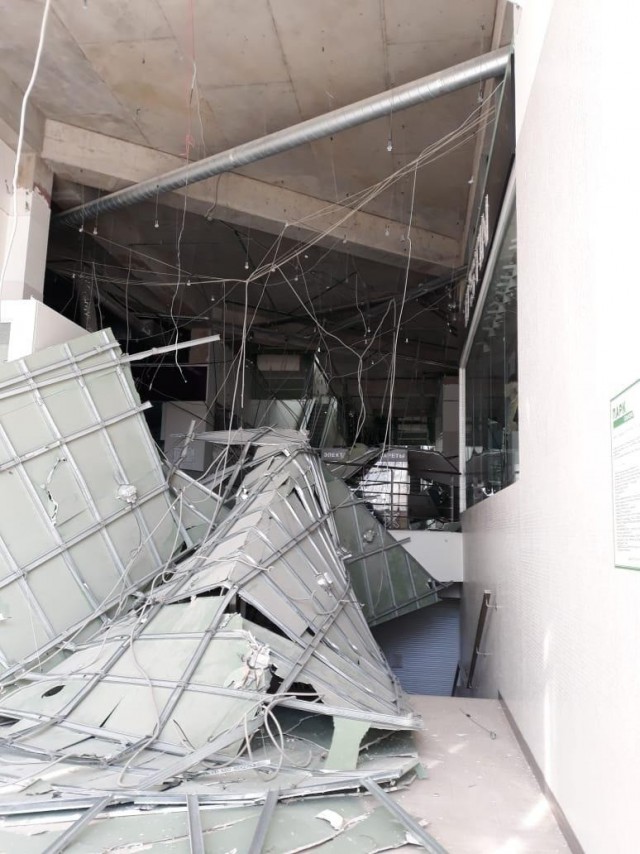 Ну, в общем, то, что на фотографиях - это амстронг и гипсокартон. Это - фигня. В офисном здании на Красной, 30Б треть амстронга поотвалилось пока не закрепили по-новой.