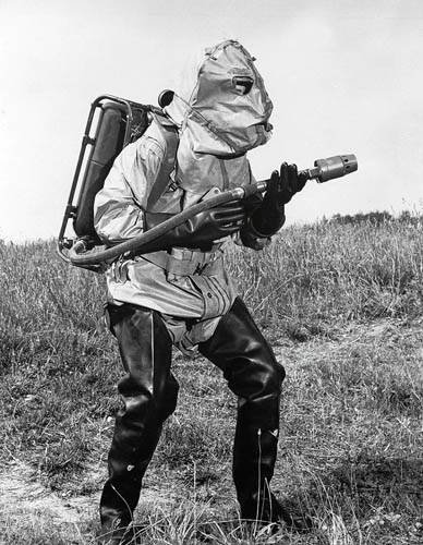 С ранцевыми огнеметами и в свинцовых доспехах.